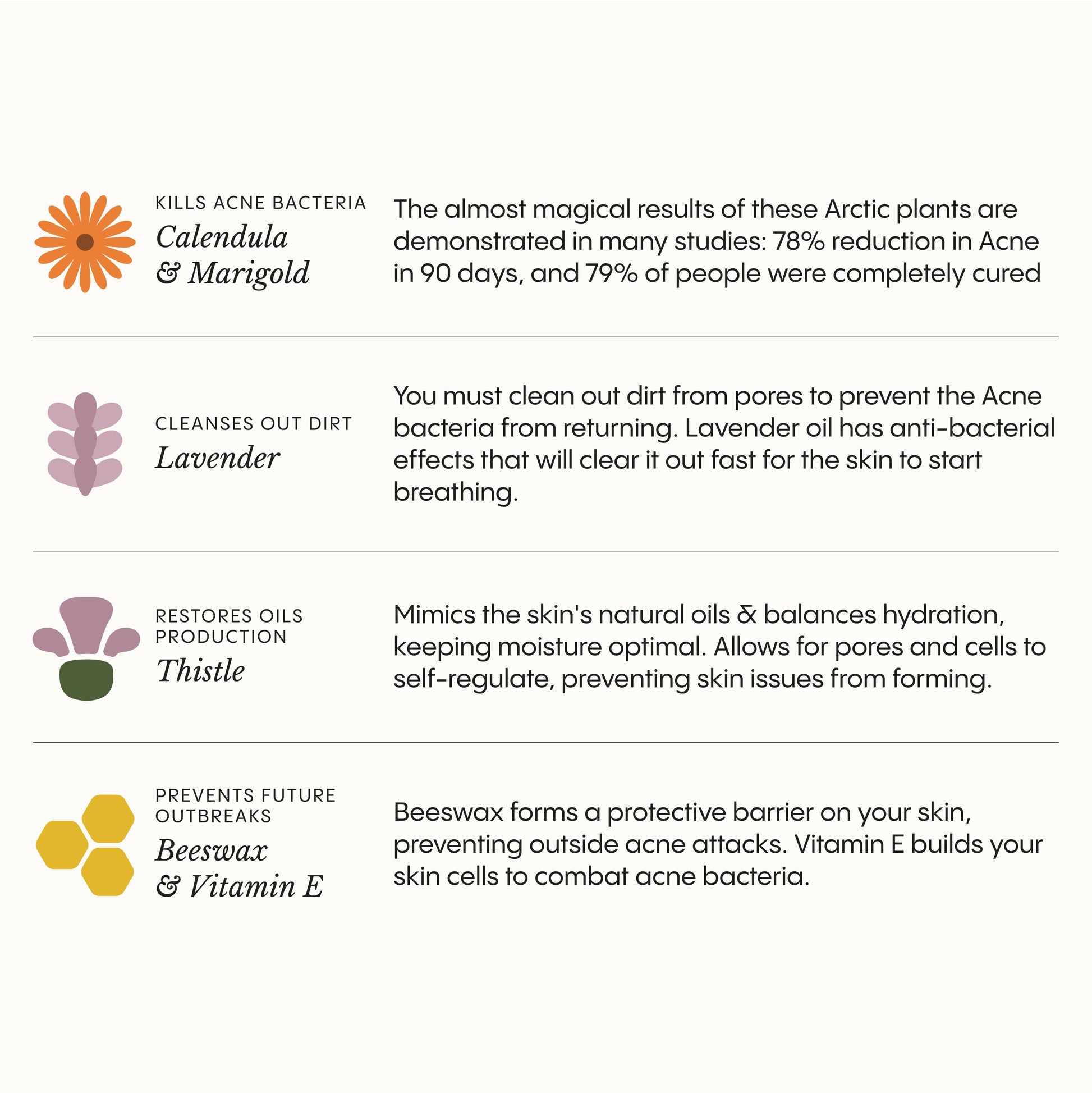 3-step system developed to remove your acne fast using the latest science and 20+ years of experience. Each product is packed with organic plants hand-picked to kill acne bacteria, cleanse your pores and make your skin glow. It includes everything you need as a woman to thrive.